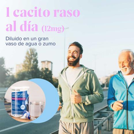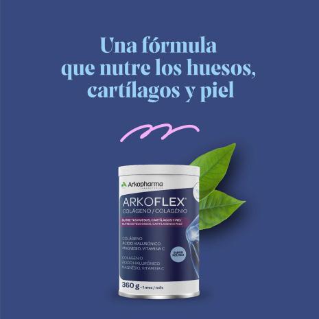 Arkoflex® Colágeno es un suplemento nutricional original que se diluye directamente en un vaso de agua grande.